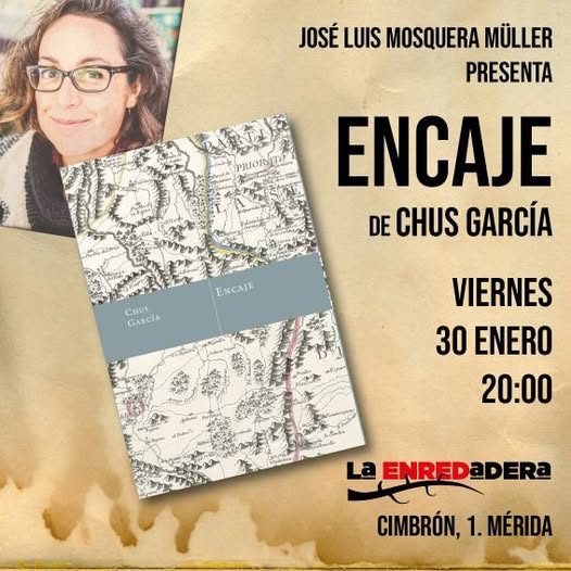 El próximo viernes, 30 de enero, a las 20:00 h., presentada por José Luis Mosquera Müller, Chus García nos presenta su última obra: Encaje.