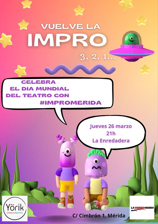 EL PRÓXIMO JUEVES celebramos el Día Internacional del Teatro, y lo hacemos junto a nuestros amigos y amigas de la escuela Yörik, Artístico Deportivo en Juegos de Impro y sorpresas.