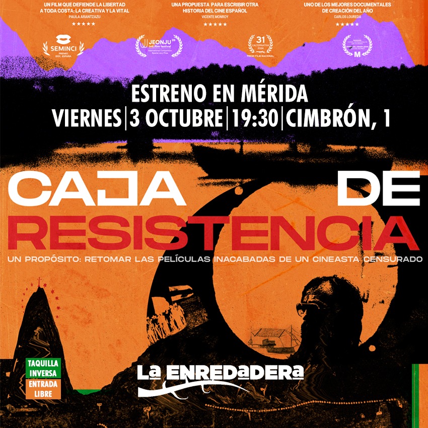 Y el VIERNES 3 de octubre, a las 19:30, día grande. Estrenamos la reinterpretación de las películas soñadas por Ruiz Vergara con un film de Barquero y Alvarado, “una película sobre películas no hechas”, una reescritura de la historia del cine español y, a la vez, una visión crítica de los cincuenta años de democracia en España: ‘CAJA DE RESISTENCIA’.
