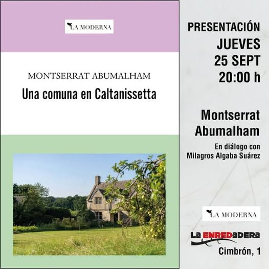MAÑANA, JUEVES 25 DE SEPTIEMBRE, a las 20:00, traemos a nuestro espacio a Montserrat Abumalham para, en diálogo con Milagros Algaba Suárez, conocer su obra UNA COMUNA EN CALTANISSETTA.