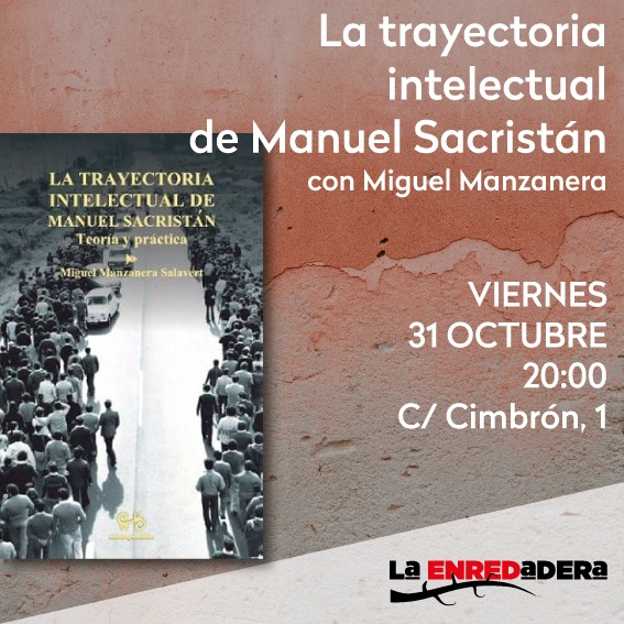 «La trayectoria intelectual de Manuel Sacristán» es el libro que presentamos el viernes 31 de octubre, a las 20:00, en La Enredadera (Cimbrón, 1), y lo haremos guiados por su autor, Miguel Manzanera Salavert, en la certeza de que nos ayudará a conocer mejor una personalidad extraordinaria.