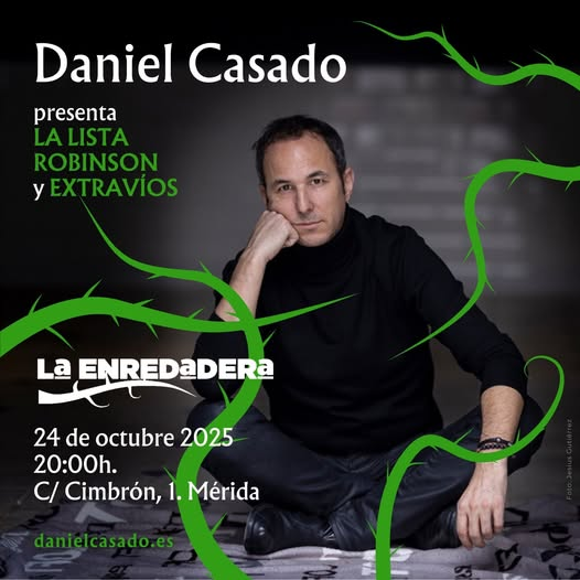 Tenemos la suerte de contar con en él en La Enredadera, este viernes 24 de octubre a las 20 horas, donde siempre, en la calle Cimbrón, 1 de Mérida.