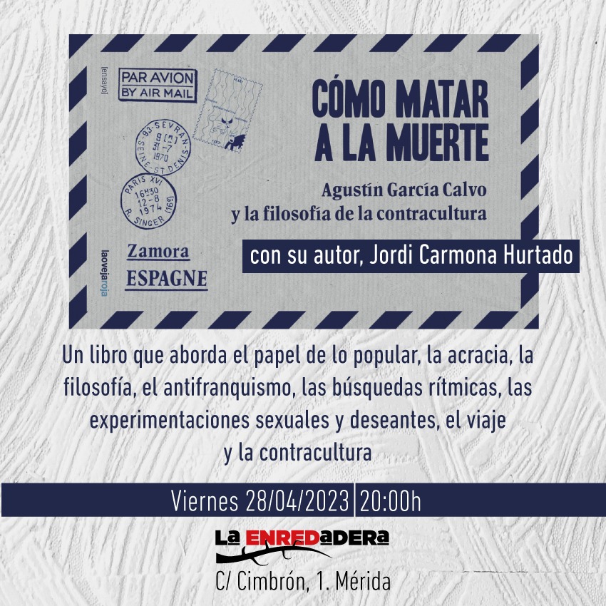El próximo viernes, 28 de abril, en La Enredadera (Cimbrón, 1, de Mérida), a las 20:00, nos reencontramos con Agustín García Calvo y su querido espíritu libertario.