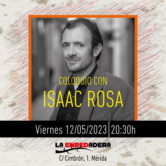 Este viernes, 12 de mayo, recibimos la visita de Isaac Rosa. Escritor, columnista, ciudadano preocupado por su tiempo que no elude el compromiso y cuyas palabras atienden, a lo largo de una extensa obra, a las vidas, duelos y quehaceres de quienes no nacimos con la cuchara llena. Acude a nuestro espacio para entablar un diálogo sencillo desde el que conocer su trabajo, pero también su mirada acerca de esta época convulsa y cargada de incógnitas. Todo en la calle Cimbrón, 1, de Mérida, en este espacio del común que es La Enredadera. Esta vez, inaugurando el horario de inesperado verano, a las 20:30.