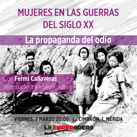 Nos volvemos a encontrar, este marzo feminista, con la voz de la historiadora e investigadora Fermi Cañaveras, de tan grato recuerdo en nuestro espacio con la presentación de su obra Putas de campo. En esta ocasión nos tiene preparado un repaso sobre el papel de la mujer en los conflictos bélicos del siglo XX, sobre su «uso» como arma de guerra e instrumento de dominación, como víctima y objetivo. Sobre la propaganda del odio. Ahora que soplan aires bélicos, toca recordar para saber de qué hablamos cuando hablamos de guerra, y hacerlo también con mirada de mujer.