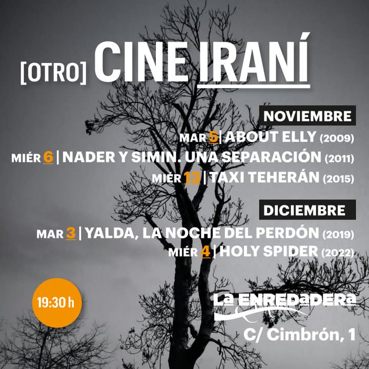 Concluimos el ciclo de cine iraní de La Enredadera (Cimbrón, 1) con Yalda, la noche del perdón, de Massoud Bakhshi (martes 3, 19:30) de y Holy Spider, de Ali Abbasi (miércoles 4, 19:30). Una historia casi distópica pero basada en hechos reales y otra que es cine policiaco puro. Dos tramas perfectamente construidas que solo dicen cosas buenas de una de las cinematografías más sorprendentes y desconocidas para el gran público. Empezamos diciembre pisando fuerte con cine del muy bueno. 100% recomendables.