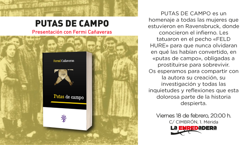 PUTAS DE CAMPO (que fue publicada en diciembre del año pasado y ya va por la segunda edición) es el fruto de cuatro años de investigación por parte de la autora, Fermi Cañaveras. Para compartir con la autora su creación, su investigación y todas las inquietudes y reflexiones que esta dolorosa parte de la historia despierta, nos vamos a encontrar el viernes, 18 de febrero, a las 20:00 horas en La Enredadera (calle Cimbrón, 1, de Mérida)