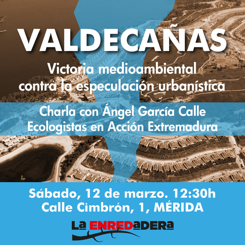 Ángel García Calle, abogado de Ecologistas en Acción de Extremadura, estará en nuestro espacio para explicar todos los detalles que rodean el fracasado proyecto urbanístico de Marina Isla de Valdecañas. Han sido años de contencioso judicial, político y social que, en su fase de resolución, ha puesto las cartas sobre la mesa acerca de los intereses que acechan a Extremadura y a su medio natural. Otra victoria medioambiental de la que aprender y a la que merece la pena atender con detalle. Todo esto en La Enredadera, el sábado 12 de marzo a las 12:30. Calle Cimbrón, número 1 de Mérida. ¡Os esperamos!