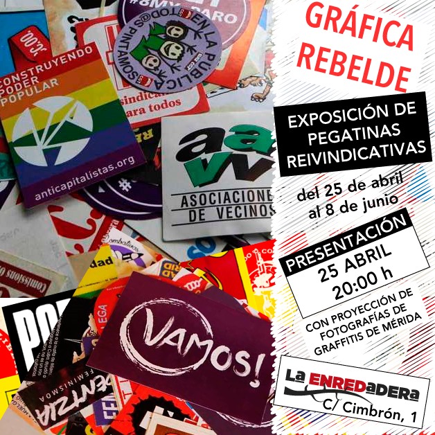 Exposición de pegatinas reivindicativas en La Enredadera (Cimbrón, 1, Mérida). Del 25 de abril al 8 de junio.