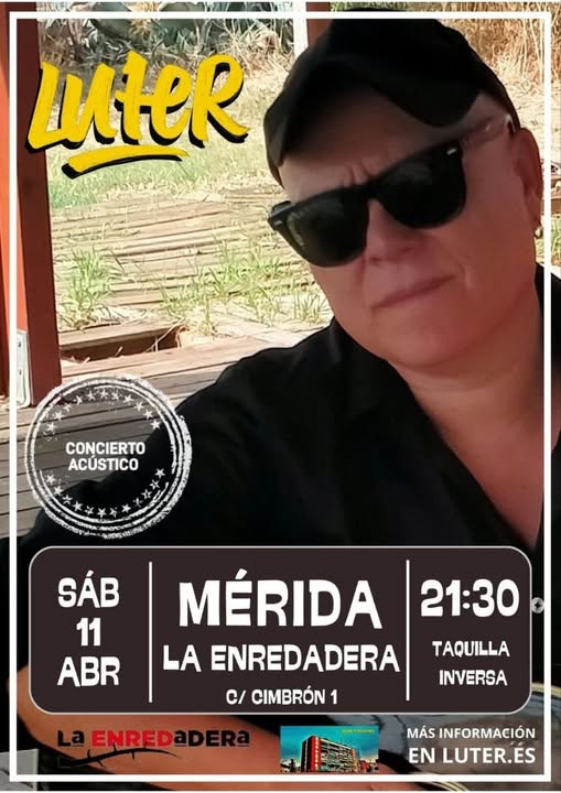 Estará en Mérida, en la Enredadera (Cimbrón, 1), el sábado 11 de abril, a las 21:30 h. Habrá taquilla inversa. Venir que os espera música de la buena.