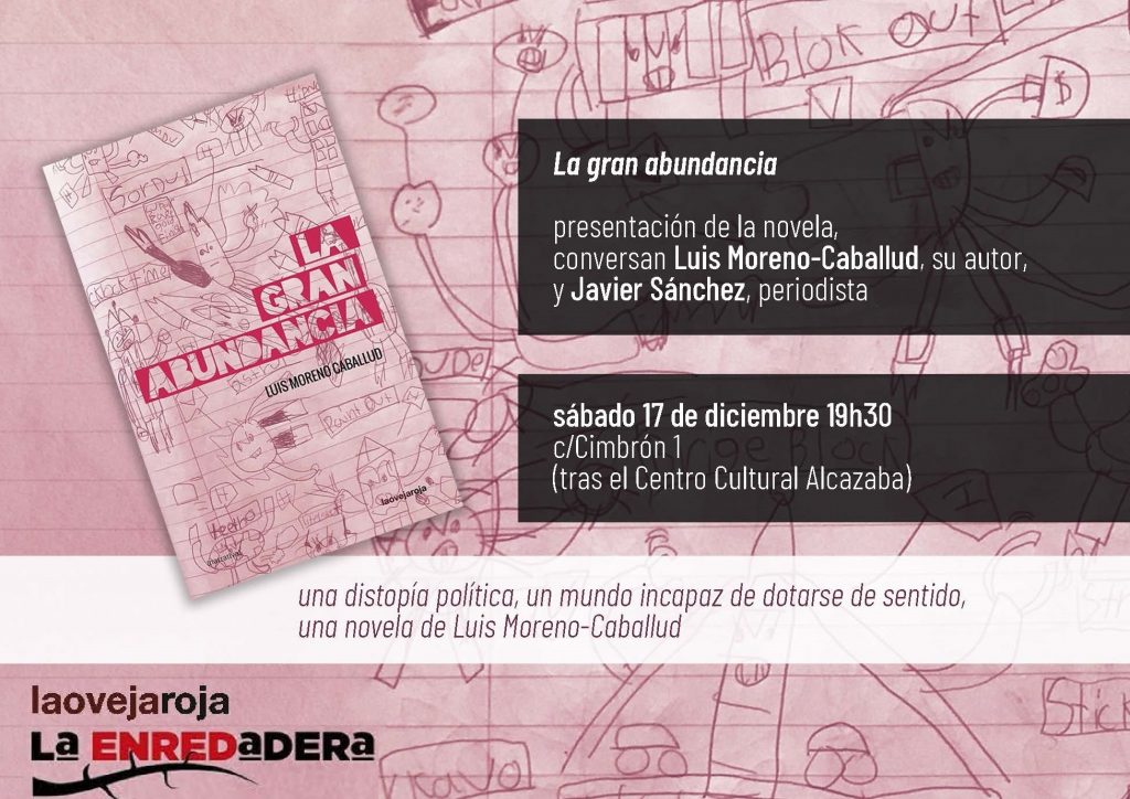 La gran abundancia tuerce el presente hasta revelar su contenido distópico, situándonos ante la condena infinita de dar «valor» a vidas individualizadas. Pero no solo: también ante la certidumbre de contar siempre con la imaginación y el lenguaje a la hora de concebir una existencia diferente. Escrita desde el malestar en el lenguaje y desde el amor a la palabra, esta novela nos lanza una pregunta: cuando se vive en un constante bombardeo de «contenidos» incapaces de transformar nuestra experiencia, ¿qué puede hacer todavía la literatura? Luis Moreno Caballud (Barcelona, 1976): La participación en espacios de experimentación política y aprendizaje autónomo nutren la labor de este investigador y escritor. Estudió filosofía entre Madrid y Barcelona e historia cultural en Estados Unidos, donde aún hoy sigue trabajando como profesor universitario. Ha investigado la «modernización» capitalista, las transformaciones del mundo rural, la crisis neoliberal y las jerarquías culturales del Estado español. Como novelista, explora desde la ficción la potencia del lenguaje en la transformación de nuestras formas de vida, cuerpos y materialidades. En los movimientos de las plazas en 2011 encontró amigxs con quienes todavía hoy sostiene una constelación de conversaciones, seminarios abiertos, comunas, procesos artísticos, publicaciones, etc.